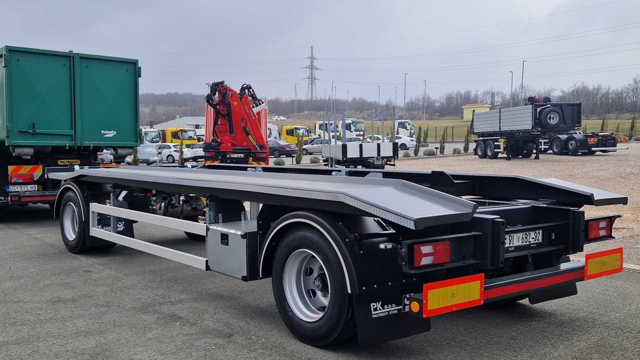 Trailer for transporting PKM 200 roll-off containers for the Arburoža utility company from Novalja. The trailer has a gross weight of 20t. The loading area is 6770 mm long and is equipped with two “tracks” for sliding roll-off containers. The trailer is adapted to transport roll-off containers 6000 mm long and with a volume of [...]