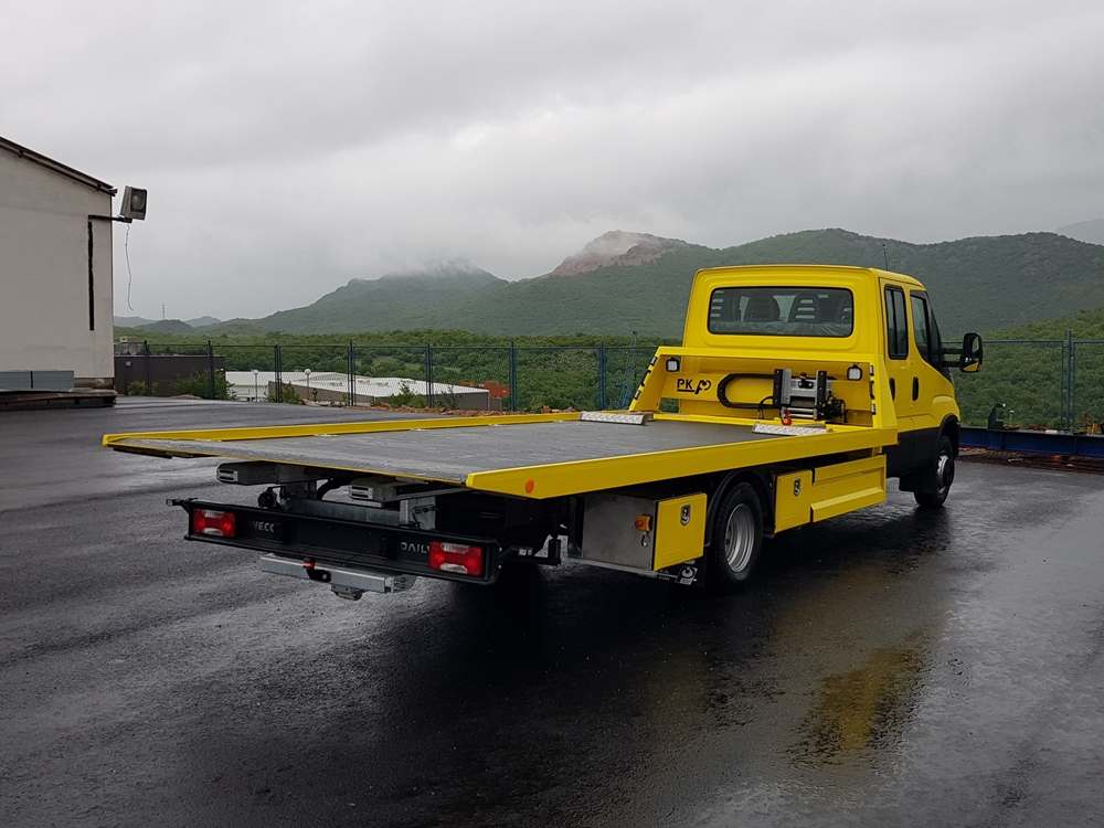 hidraulično klizna platforma dužine 5400 mm s daljinskim upravljanjem. Nadogradnja je izvedena na Iveco Daily 70C18D s duplom kabinom. Platforma je aluminijska a pomoćna šasija pocinčana. Na platformi su montirane priveznice za fiksiranje vozila, po 8 kom uz uzdužne rubove platforme. Platforma ima hidraulično vitlo potezne sile 3600 kg. Nadogradnje je opremljena s tri kutije za alat i radnim reflektorima, a u jednoj kutiji je smješten hidraulični razvodnik s alternativnim ručnim komandama.