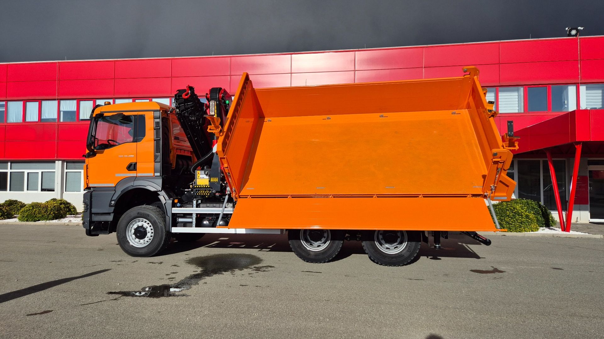 Za Tehnoelektro d.o.o. uspješno smo realizirali kamionsku nadogradnju koja uključuje Palfinger dizalicu PK 33002 EH u kombinaciji s trostranim aluminijskim kiperom TK160AL-4.6. Nadogradnja je izvedena na vozilu MAN TGS 33.480 6×6 BB, s međuosovinskim razmakom od 3.600 mm, te je u potpunosti prilagođena zahtjevima terenskog rada.