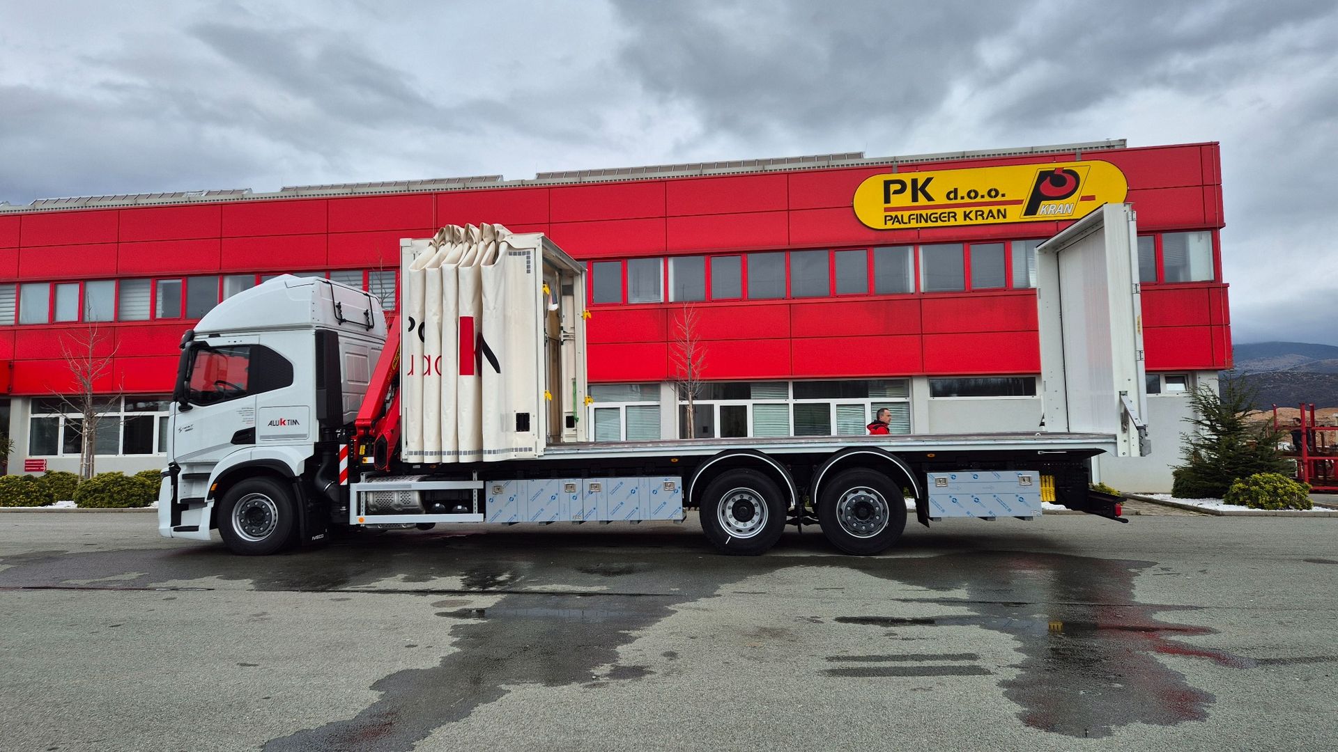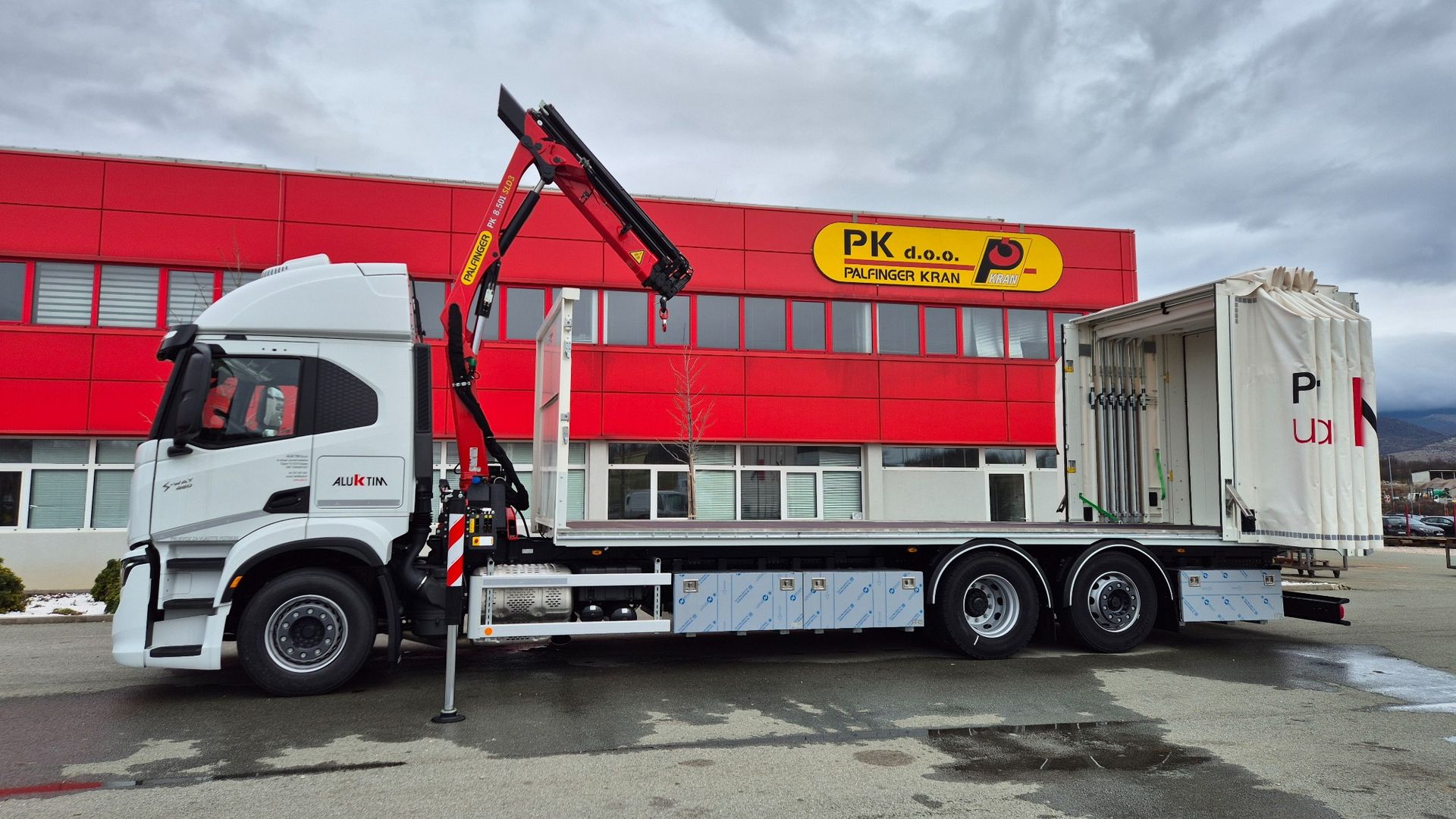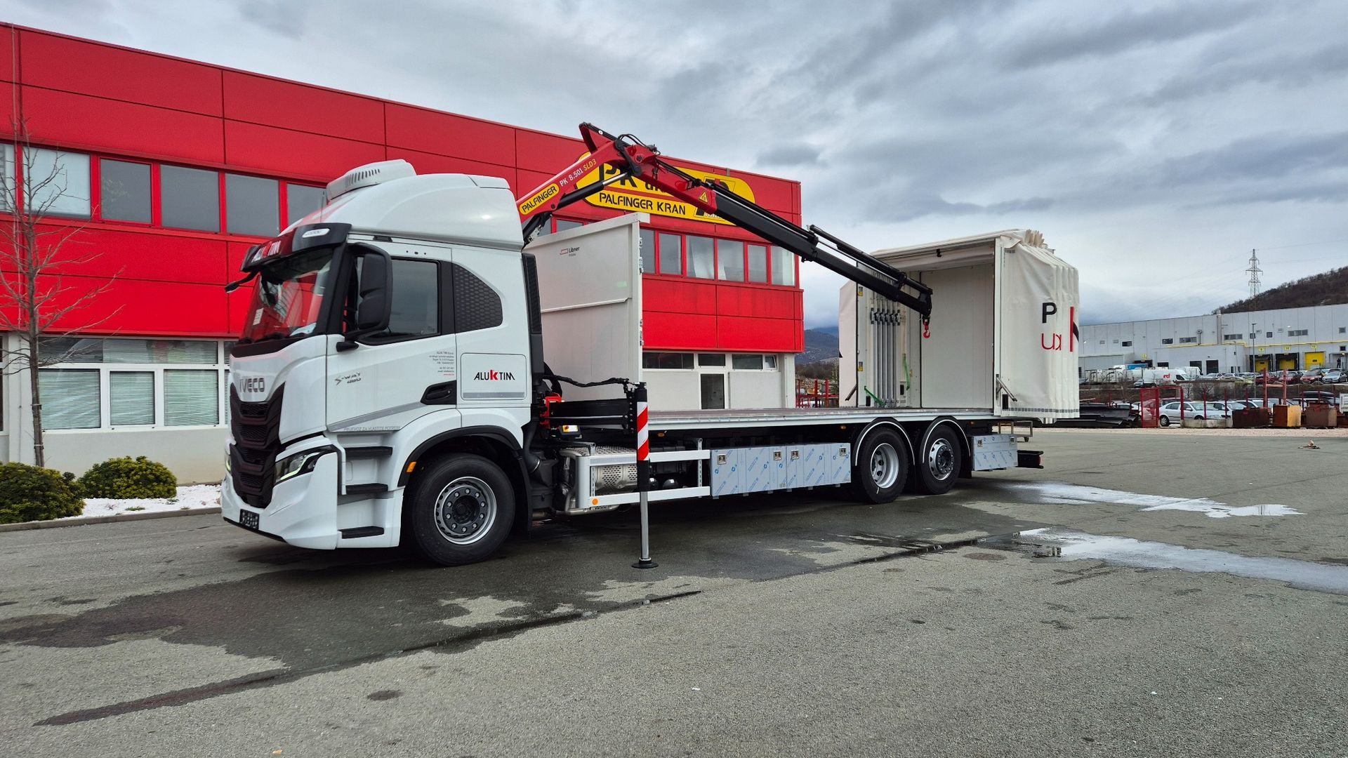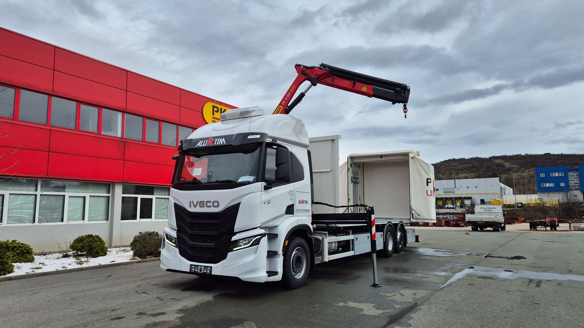 Uspješno je realizirana isporuka kamionske nadogradnje opremljene PALFINGER PK 8.501 SLD3 dizalicom s C hidrauličnim produžetkom, koja ostvaruje maksimalni dohvat od 14,2 m, te Libner OpenBox C+ ceradom, ugrađene na šasiju Iveco S-WAY AT260S46Y/PS. Dizalica je ugrađena iza kabine, čime je osigurana optimalna raspodjela mase i maksimalna iskoristivost utovarnog prostora.