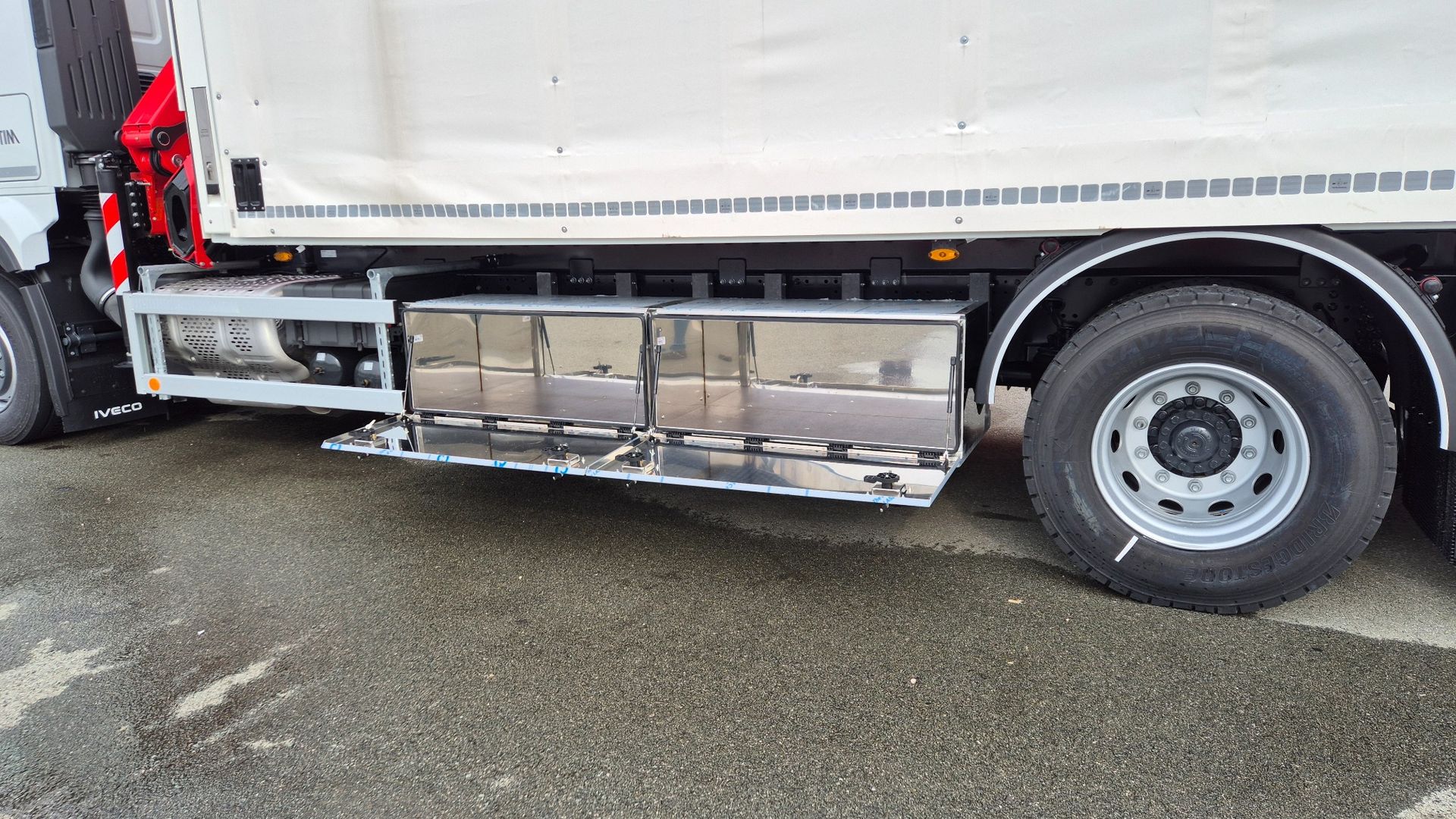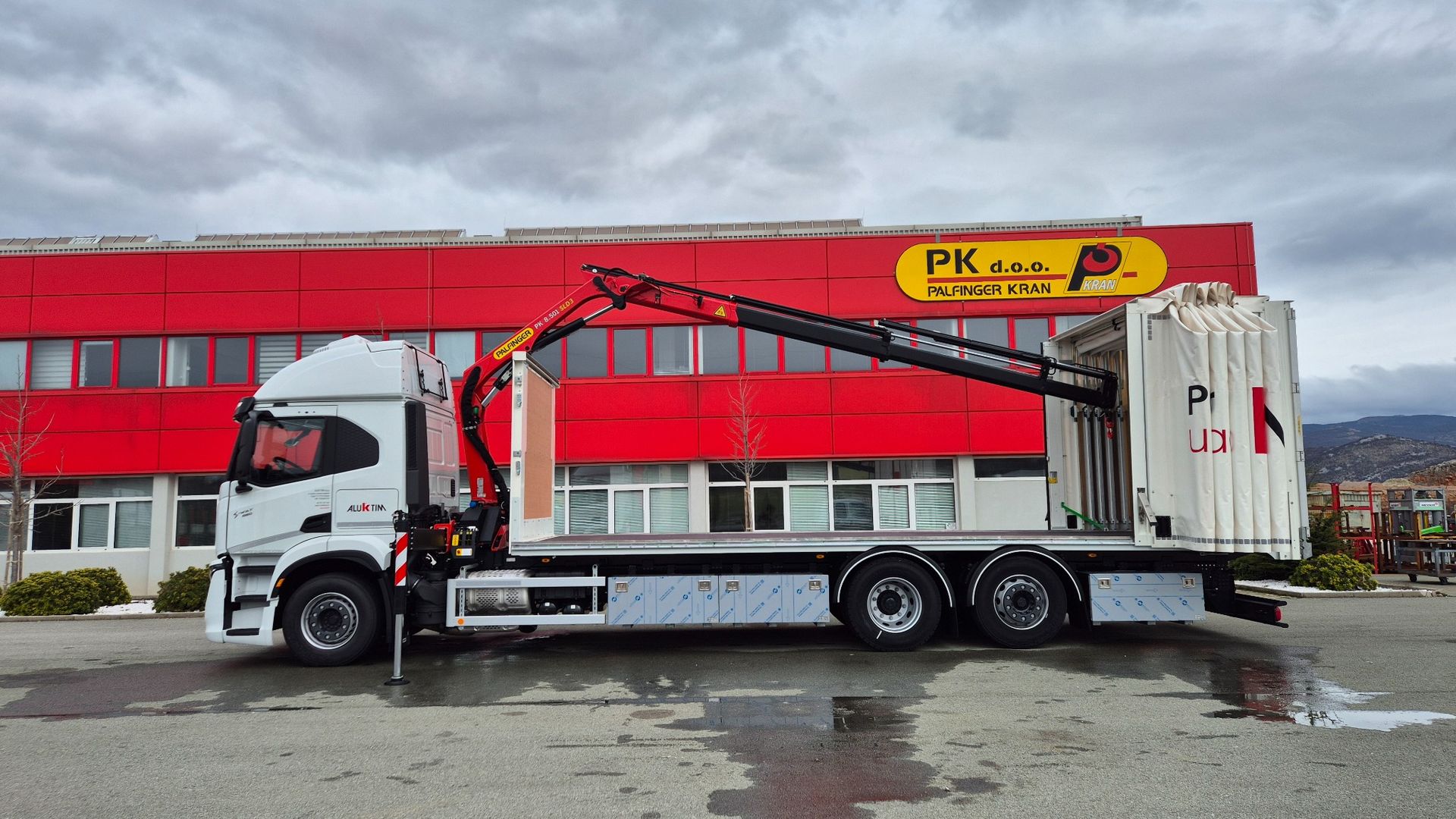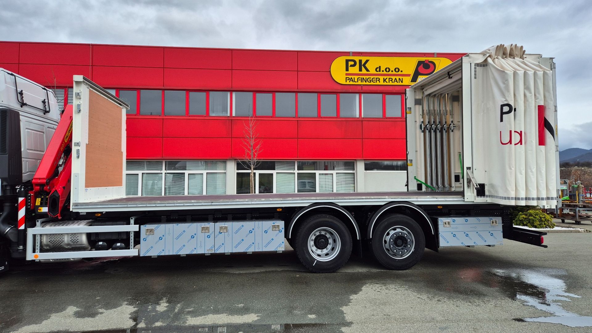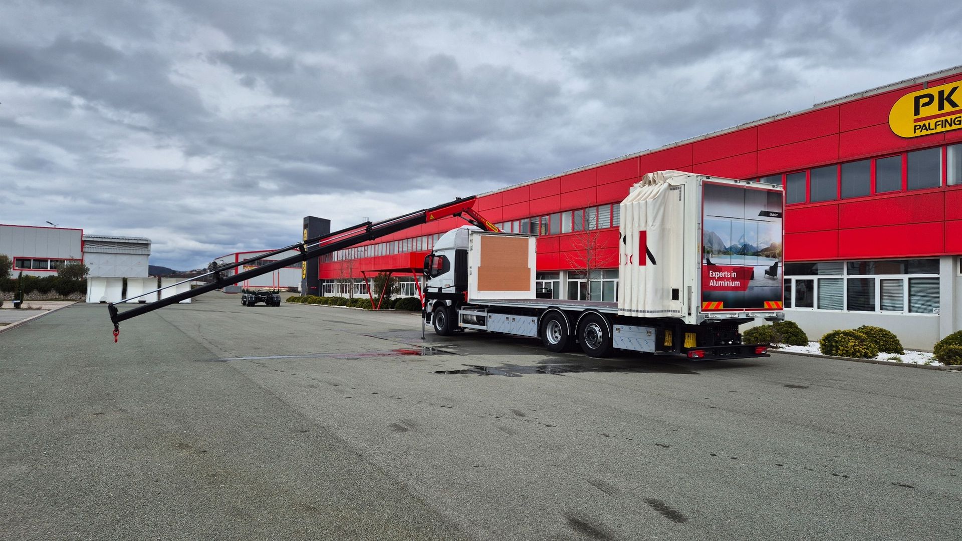 Uspješno je realizirana isporuka kamionske nadogradnje opremljene PALFINGER PK 8.501 SLD3 dizalicom s C hidrauličnim produžetkom, koja ostvaruje maksimalni dohvat od 14,2 m, te Libner OpenBox C+ ceradom, ugrađene na šasiju Iveco S-WAY AT260S46Y/PS. Dizalica je ugrađena iza kabine, čime je osigurana optimalna raspodjela mase i maksimalna iskoristivost utovarnog prostora.