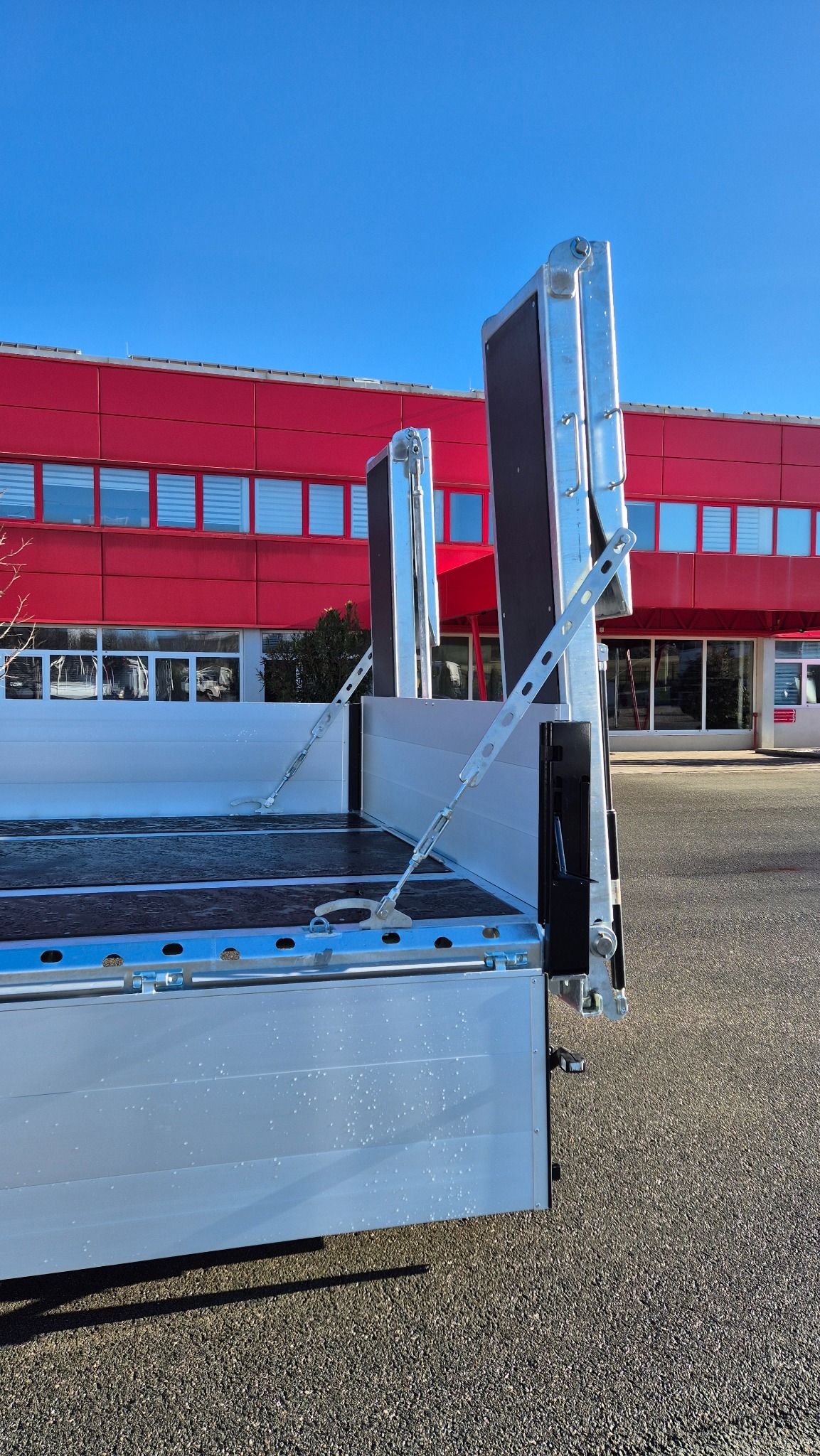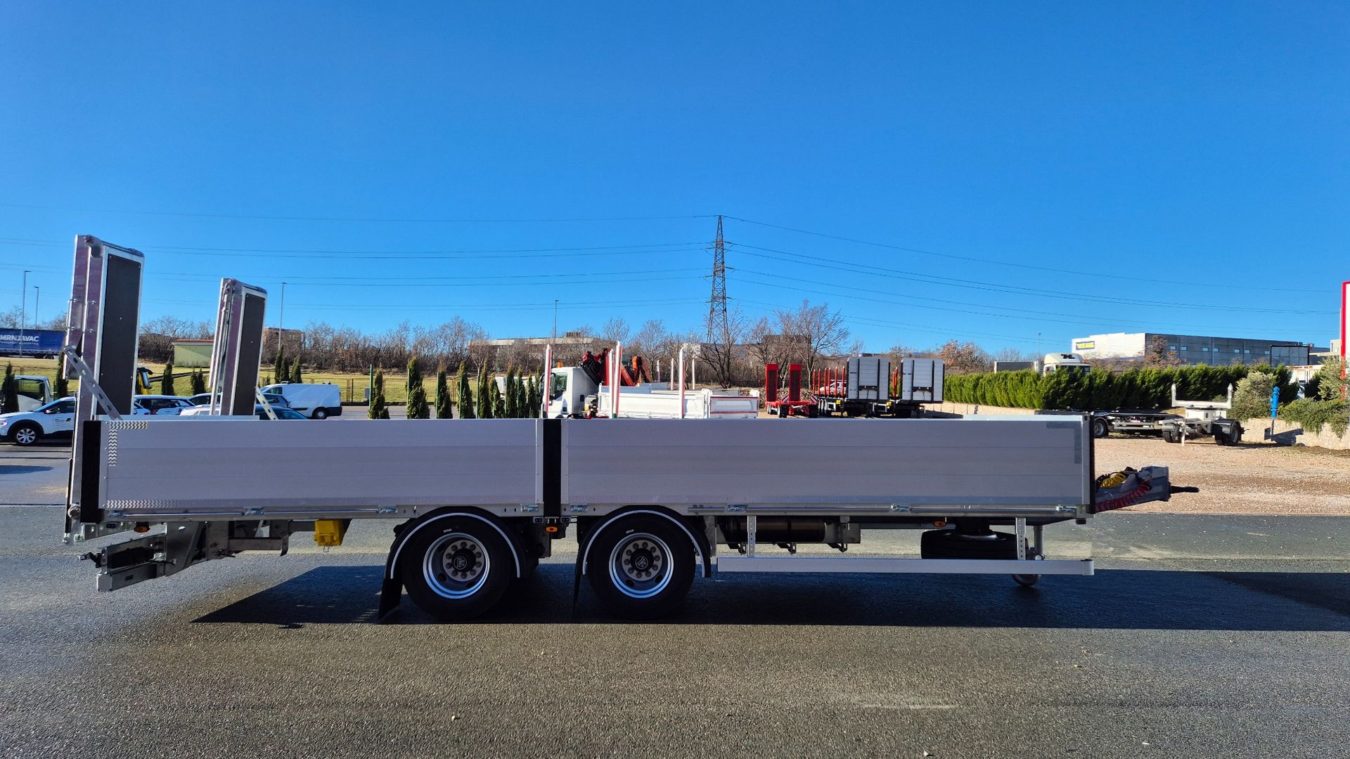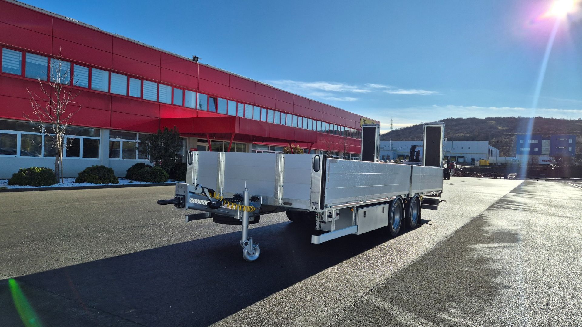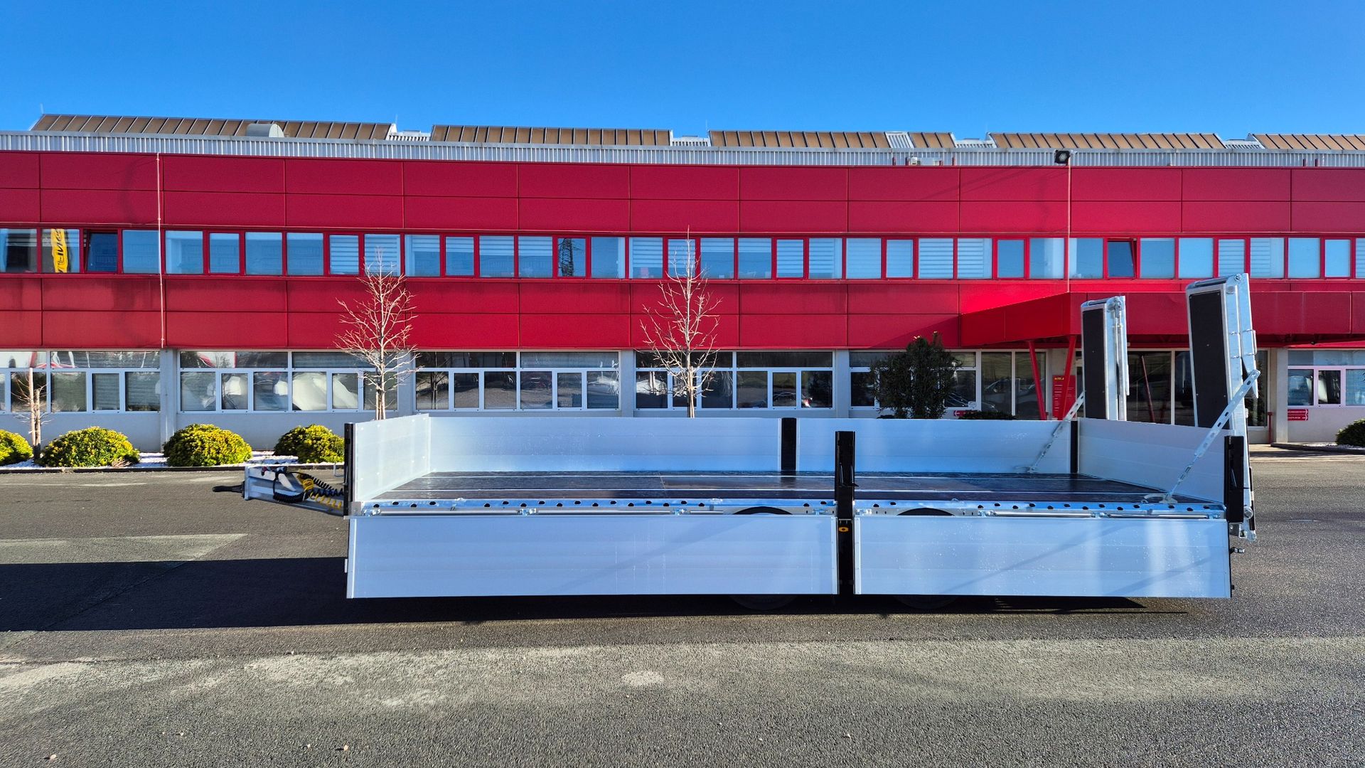 Model je opremljen stranicama visine 600 mm od eloksiranog aluminija te podnicom od protuklizne vodootporne šperploče. Stražnje utovarne rampe izvedene su kao preklopne, s mehaničkim spuštanjem i podizanjem te mogućnošću mehaničkog pomicanja lijevo i desno, što omogućuje prilagodbu različitim širinama strojeva. Zavarena konstrukcija osigurava visoku čvrstoću i stabilnost, dok su dvije osovine nosivosti 9.000 kg po osovini u kombinaciji sa zračnim ovjesom i naprednim kočionim sustavom s ECOtronic EBS jedinicom jamstvo sigurnosti i stabilnosti u svim prometnim i radnim uvjetima.