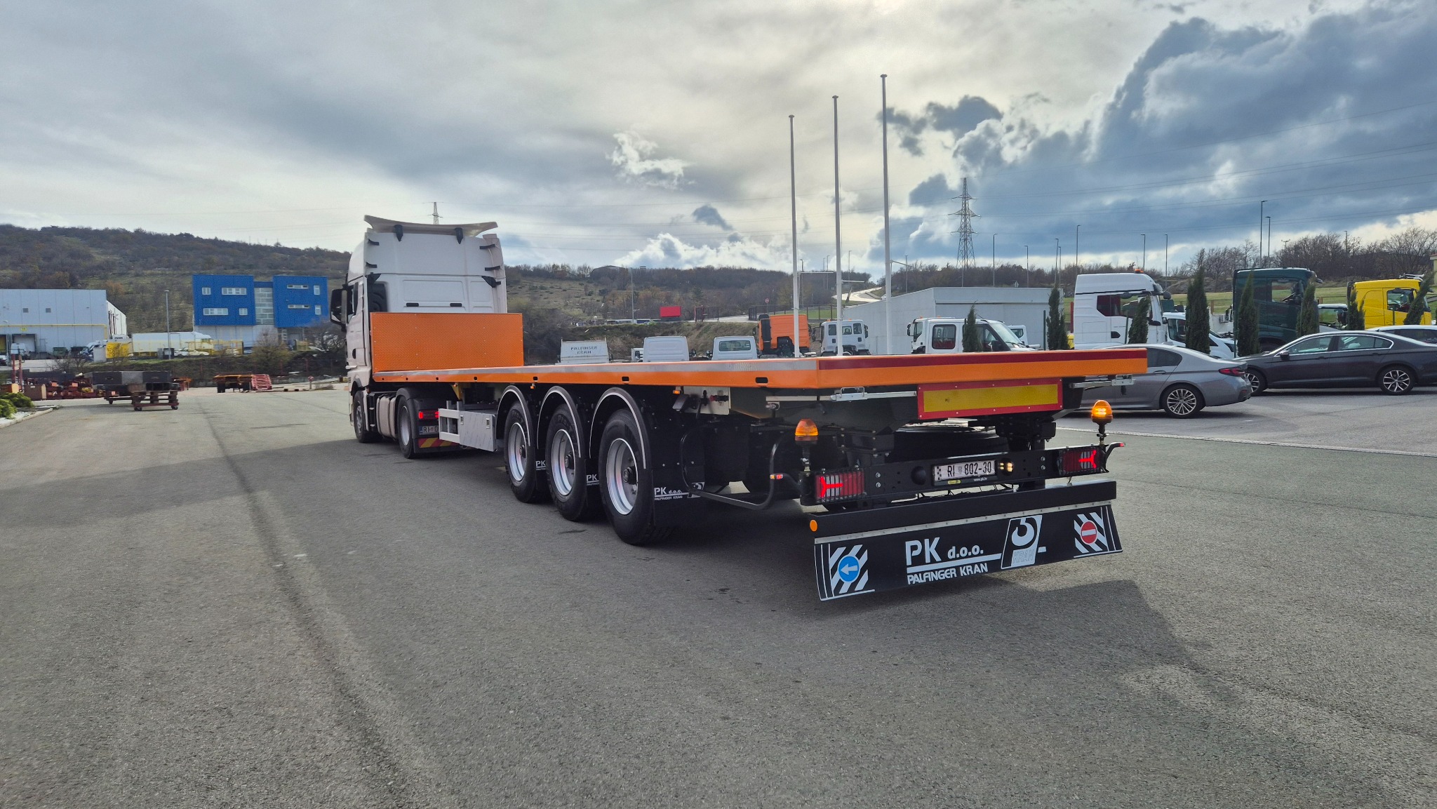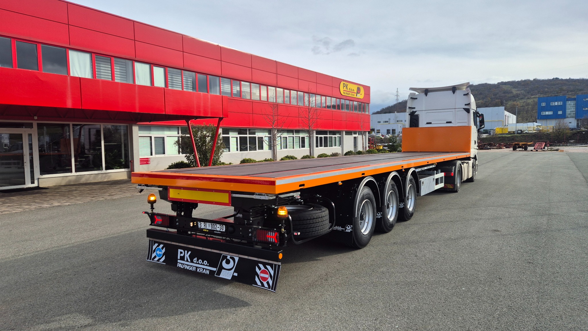 Za našeg dugogodišnjeg partnera STSI isporučili smo dvije specijalne poluprikolice PPSM39 namijenjene prijevozu stupova i cijevi, konstruirane tako da zadovolje najviše zahtjeve industrije. Svaka poluprikolica ima korisnu nosivost od približno 29.000 kg i opremljena je troosovinskim sustavom BPW s EBS i ABS sigurnosnim tehnologijama koje osiguravaju kraći put kočenja i visoku stabilnost pri transportu. Zračni ovjes, disk kočnice te podizna osovina dodatno doprinose optimalnoj mobilnosti i sigurnosti u prometu.