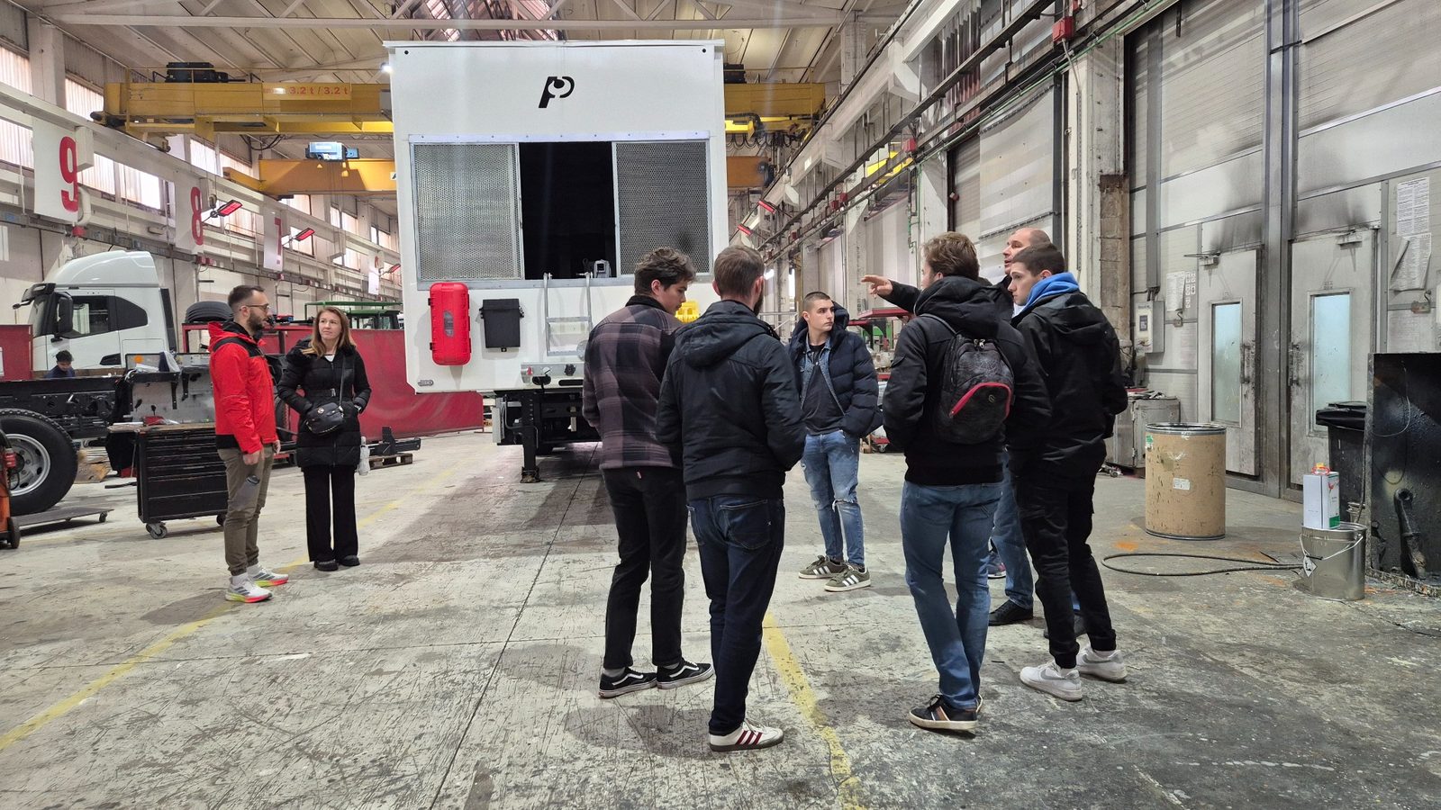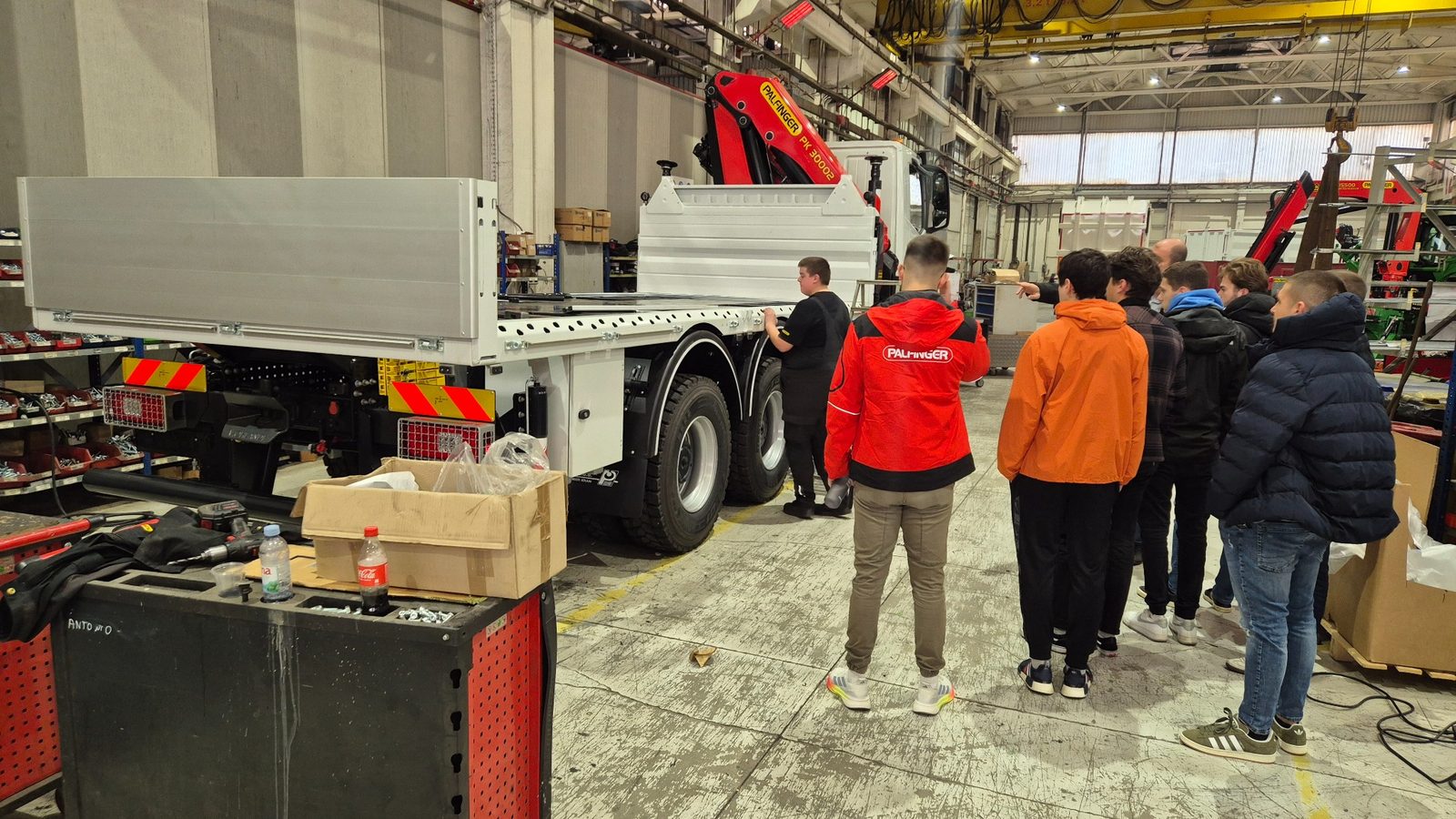 Tijekom obilaska studenti su imali priliku upoznati kompletan proizvodni proces – od projektiranja i konstrukcije, preko laserskog i plazma rezanja metala, preša od 800 tona i robota za zavarivanje, pa sve do završne montaže i lakirnice. Nakon obilaska studenti su pogledali video “Around the World” te najnoviji promotivni video PK-Palfinger Krana, koji prikazuje snagu, preciznost i inovativnost naših nadgradnji. Druženje je nastavljeno uz kratku okrjepu i podjelu Palfinger promotivnih poklona, a dan smo završili zajedničkom fotografijom ispred kamiona s dizalicom.