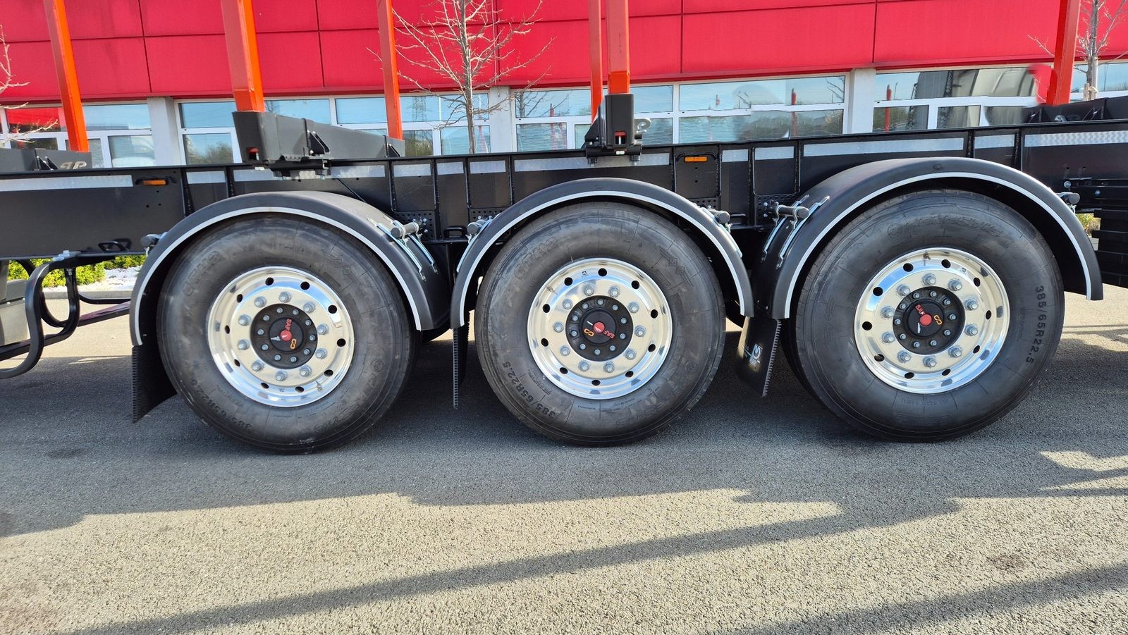 Čvrsta čelična konstrukcija šasije, u kombinaciji s tri SAF osovine, zračnim ovjesom i disk kočnicama, omogućuje sigurnu i stabilnu vožnju. Sustav kočenja temeljen na WABCO EBS tehnologiji, uz TRS stabilizaciju, dodatno povećava sigurnost u transportu.