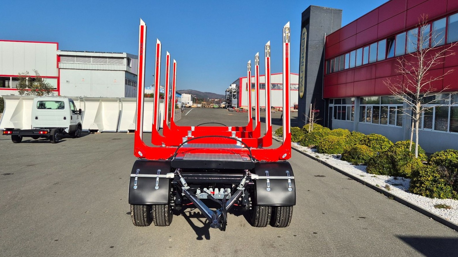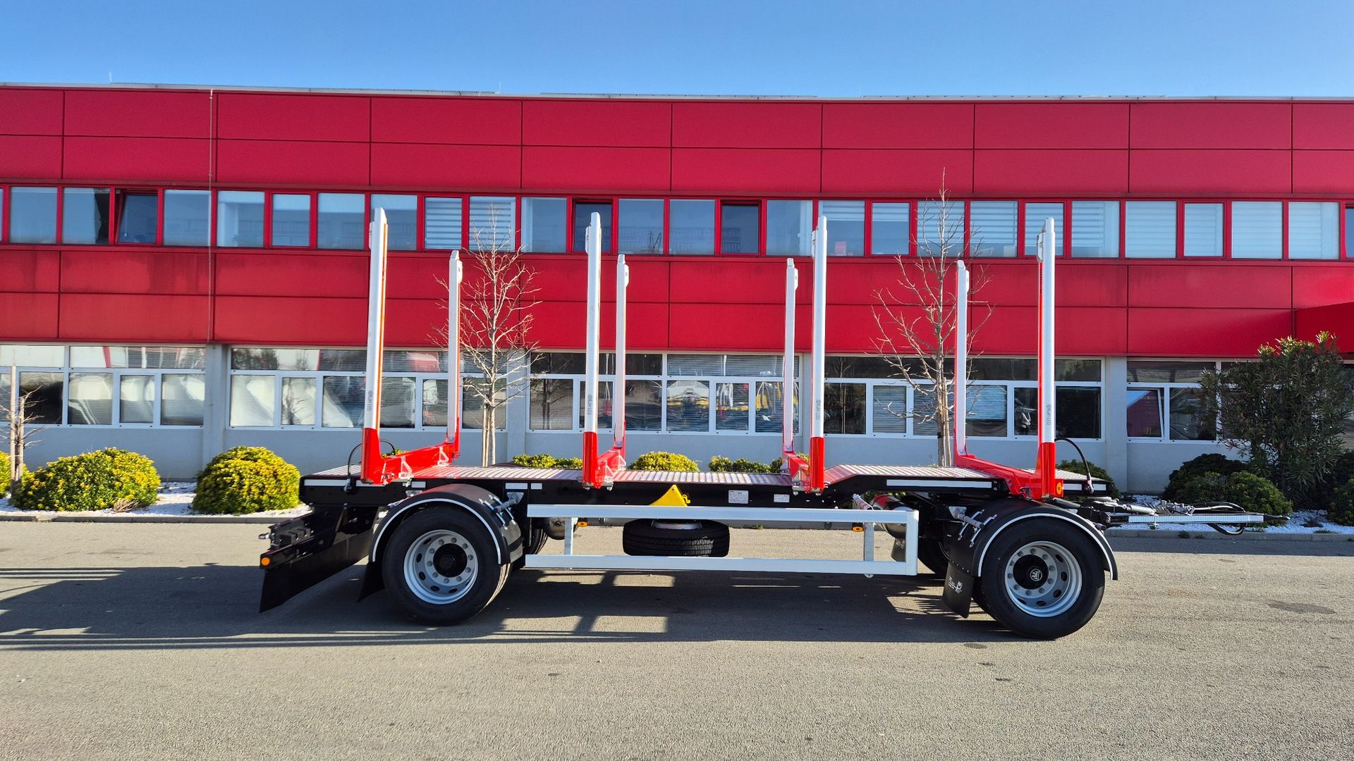 Za siguran transport drvnih trupaca ugrađena su četiri para ExTe D7 nosača (štica) s teleskopskim aluminijskim elementima raspona 2040 – 3000 mm. Prvi par nosača je fiksan i integriran u šasiju, dok su ostali pomični kako bi se omogućila fleksibilnost pri utovaru različitih duljina drvnih sortimenata. Prikolica je opremljena s 8 guma dimenzije 275/70 R22.5 na čeličnim naplatcima, dok A-tip vučne rude osigurava stabilno i sigurno spajanje s vučnim vozilom.
