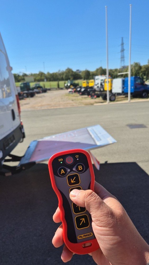 Upravljanje rampom moguće je na više načina, ovisno o situaciji na terenu — putem komandi unutar vozila, nožnih komandi na samoj platformi ili preko bežičnog daljinskog upravljanja, što korisniku omogućava maksimalnu fleksibilnost i sigurnost tijekom utovara i istovara.